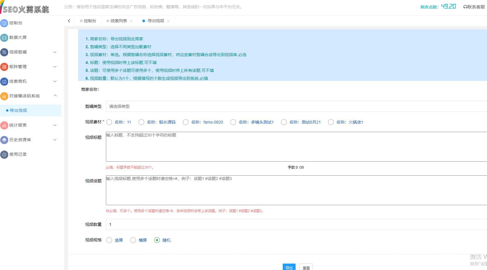可以手动导出视频,即可上传至,市面上所有的爆店码系统里